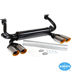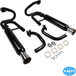 Exhaust system for Dune Buggy, black with chrome tips, glass packed