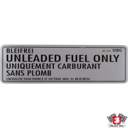 "สติ๊กเกอร์ ""น้ำมันไร้สารตะกั่ว Oktan min 91 Roz/Ron"""