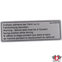 "สติ๊กเกอร์ ""คำเตือน - เบาะนั่งหมุนได้จะต้องอยู่ในตำแหน่งหันหน้าไปทางด้านหน้าขณะขับขี่"""