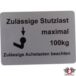 "สติ๊กเกอร์ ""Zulässige Stützlast maximum 100 kg"""
