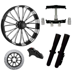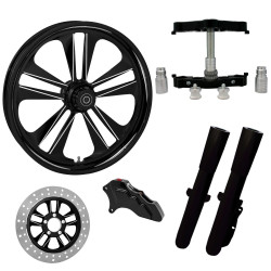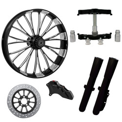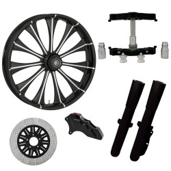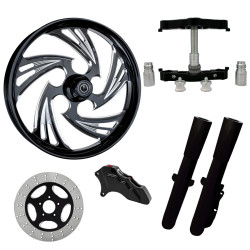 Assault Black 23” ยางล้อ Dual Rotors พร้อม Raked Triple Trees ส่วนล่างและตัวเลื่อน | โจมตี-DUAL-BLK-KIT-PCKG