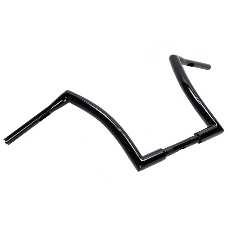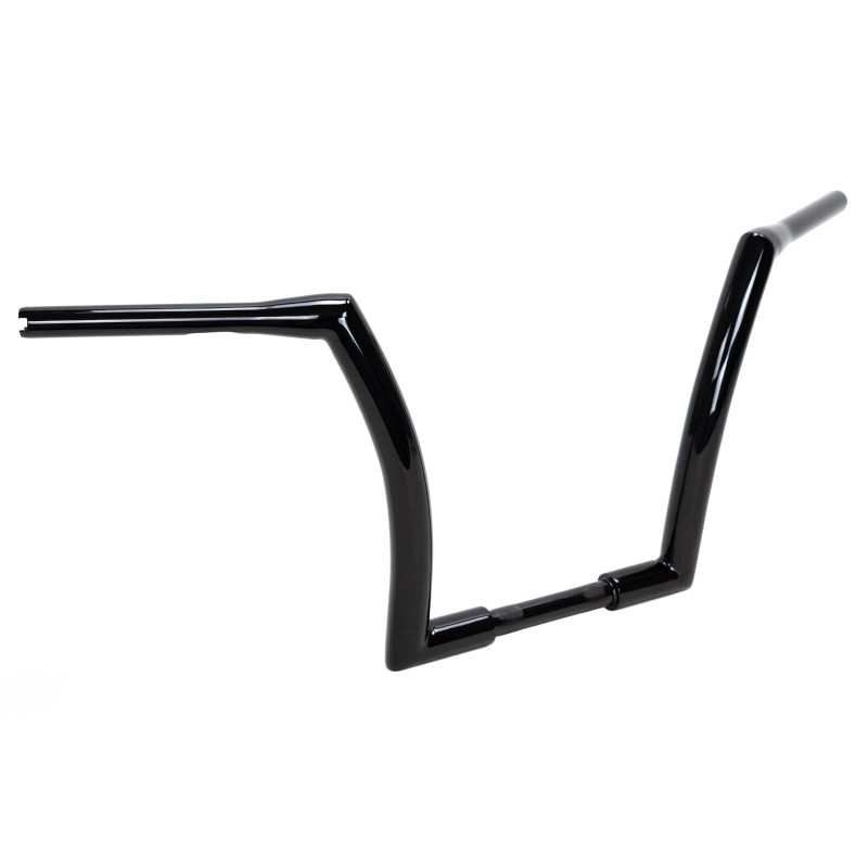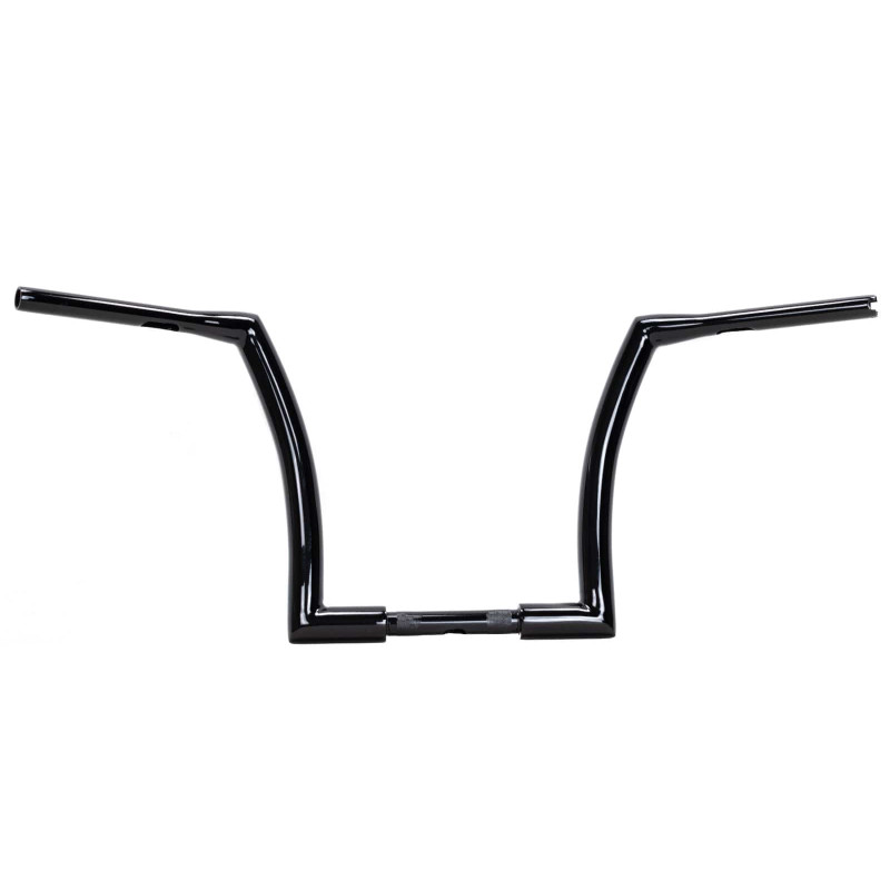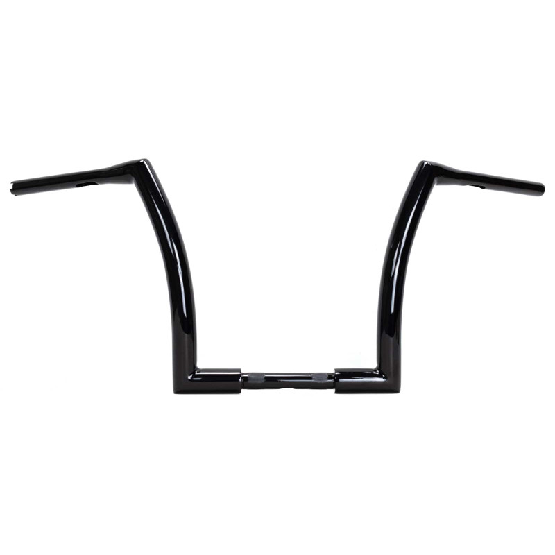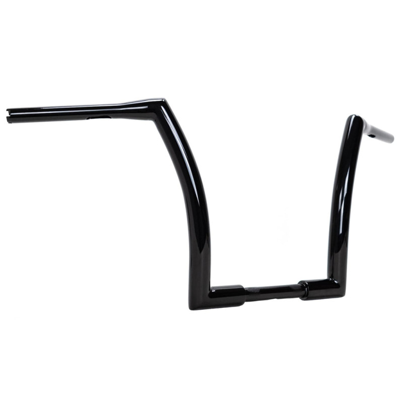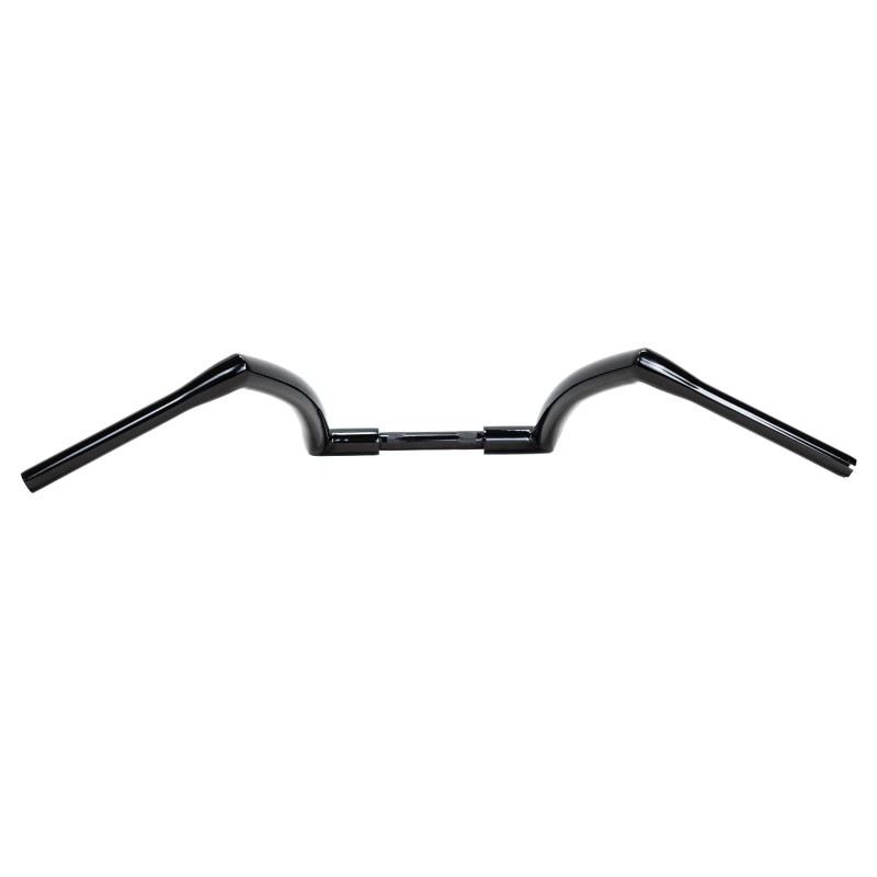 แฮนด์มือจับเส้นผ่านศูนย์กลาง 11/2 นิ้ว ออกแบบมาเพื่อความสะดวกสบายสูงสุด ส่วนปลายที่มีรอยบากสำหรับคันเร่งแบบลวดหรือคันเร่งมาตรฐาน แฮนด์มีรอยบุ๋มและเจาะสำหรับการเดินสายไฟและส่วนควบคุมแฮนด์ การใช้งานส่วนใหญ่ต้องใช้สายเคเบิลที่ยาวขึ้นและส่วนขยายของการเดินสายไฟแฮนด์ ขนาดแฮนด์ (ความสูงโดยรวม ความกว้างด้านล่าง ฯลฯ ) วัดจากศูนย์กลางถึงศูนย์กลางของท่อหากมี เส้นผ่านศูนย์กลาง 1" ที่บริเวณจับยึดและบริเวณจับ/ควบคุมมือ ผิวเคลือบผงสีดำเงาเรียบ ขนาด: เพิ่มขึ้น 14" ดึงกลับ: 6-7" กว้างโดยรวม: 35" กว้างด้านนอกด้านล่าง: 13 12" ความกว้างของพื้นที่หนีบ 1": 5 1/2" Knurling สำหรับแคลมป์กว้าง 1" และระยะห่างมาตรฐาน 3.5" Harley (กึ่งกลางถึงกึ่งกลาง)