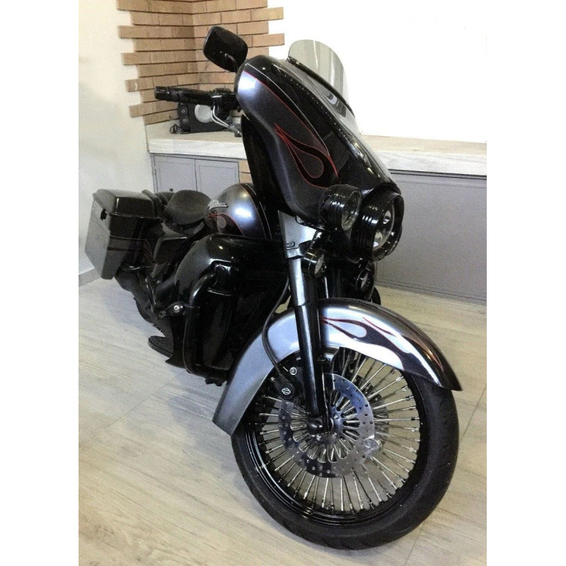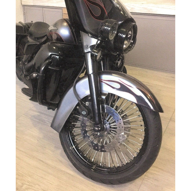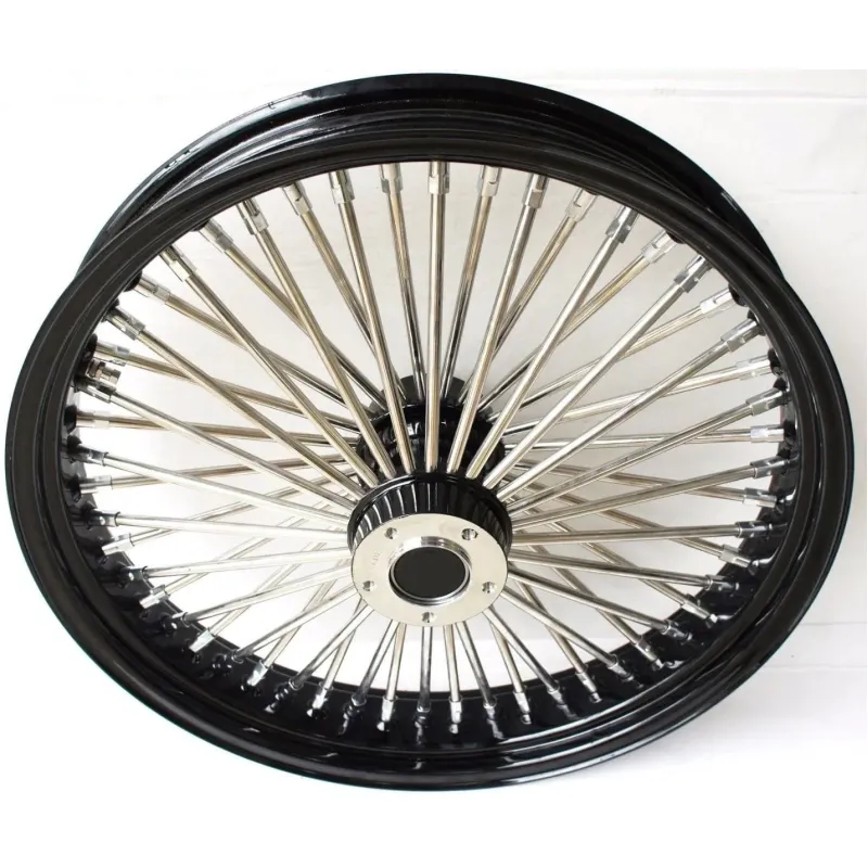 21x3.5 52 Mammoth Fat Spoke ล้อหน้า Chrome ขอบสีดำ 84-99 Harley Touring